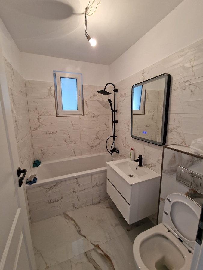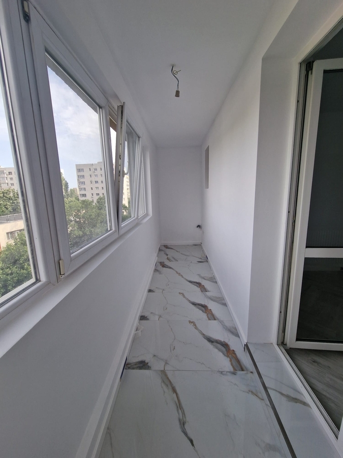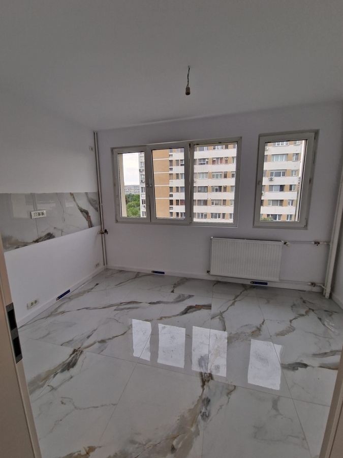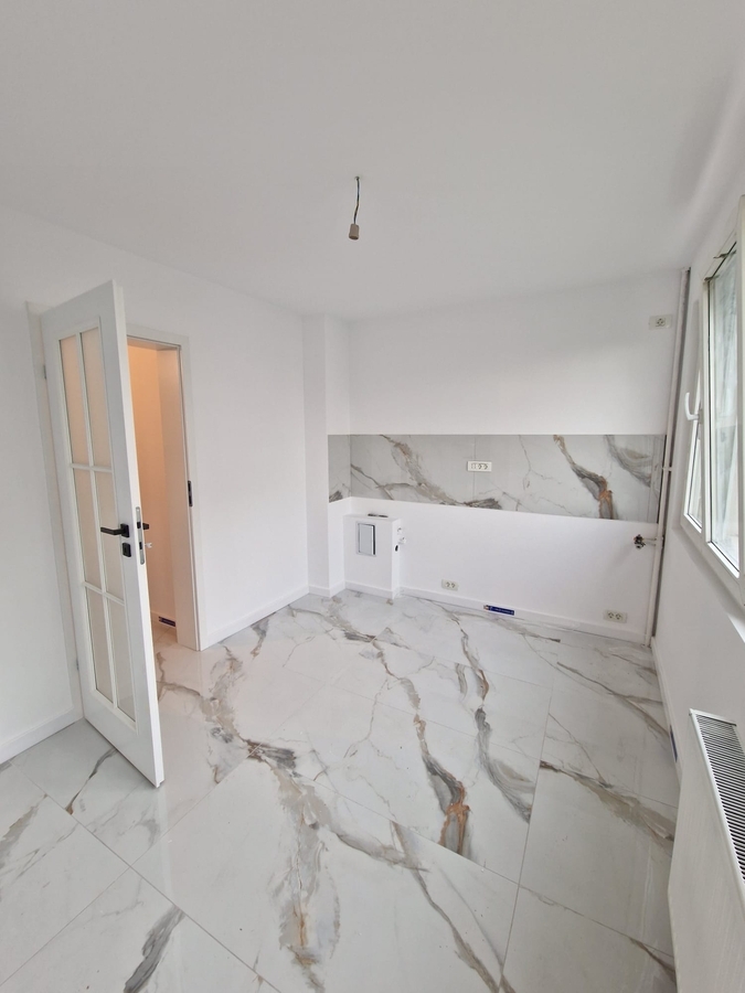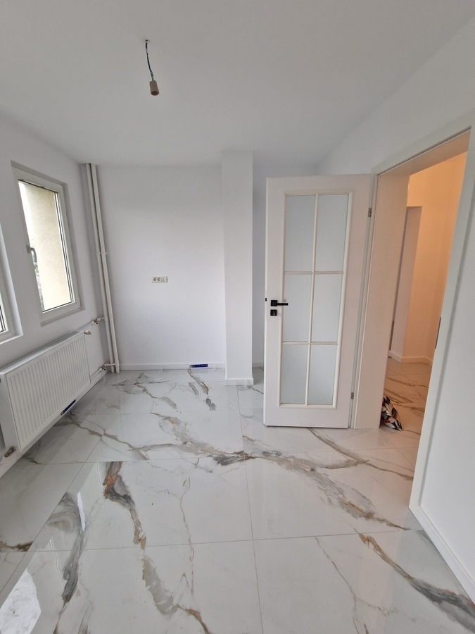 Apartamentul este renovat complet, dispune de o bucatarie mare inchisa de 10 mp, are gresie, faianta, parchet, termopane, usa metalica, instalatii electrice si sanitare schimbate, usi noi si geam la baie.