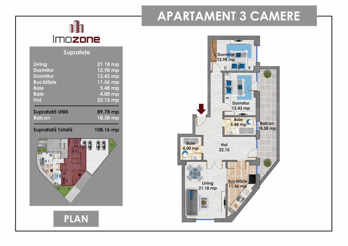 Ce il diferentiaza? Balconul de 19 mp, camere mari, finisaje premium, locatie avantajoasa si spatii generoase ce creeaza un sentiment de "acasa" in armonie cu stilul tau de viata!
