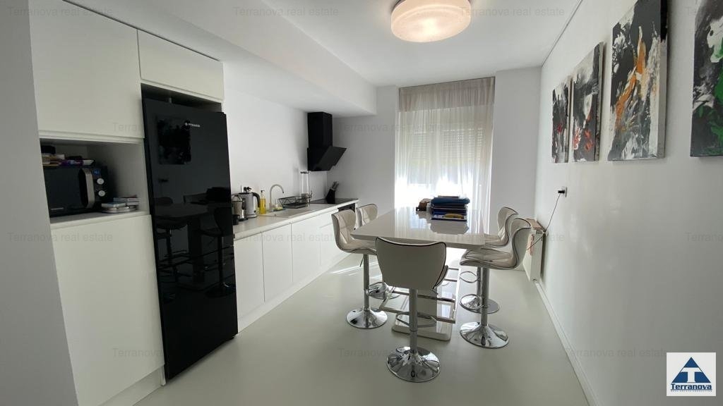 2/4, 139mp, camere spatioase, mobilat partial, renovat, terasa generoasa + balcon, vedere pe doua laturi, neobturata, doua locuri parcare, zona linistita, langa parc, ideal investitie sau locuire,
