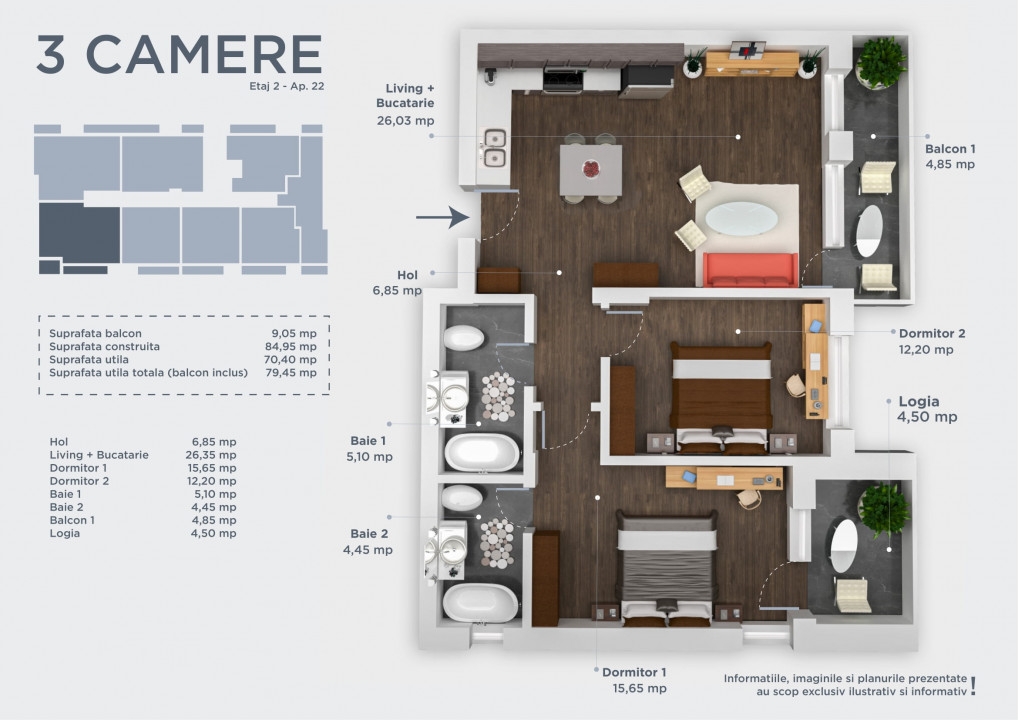 - Suprafata 85 mp