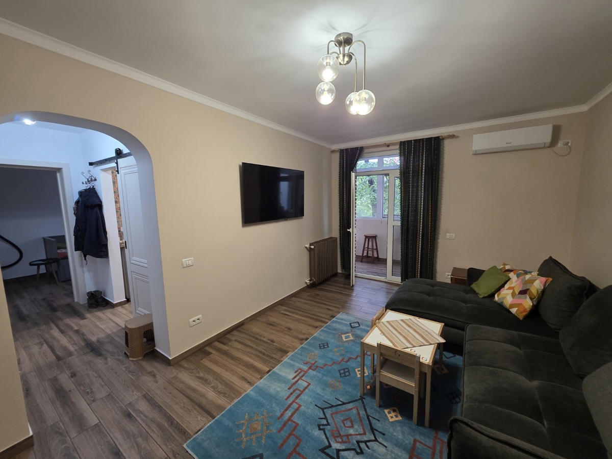 Apartamentul este renovat complet, partial mobilat si utilat, are intalatiile electrice si sanitare schimbate, aer conditionat, gresie, faianta, parchet, termopane, usa metalica si usi interioare noi.