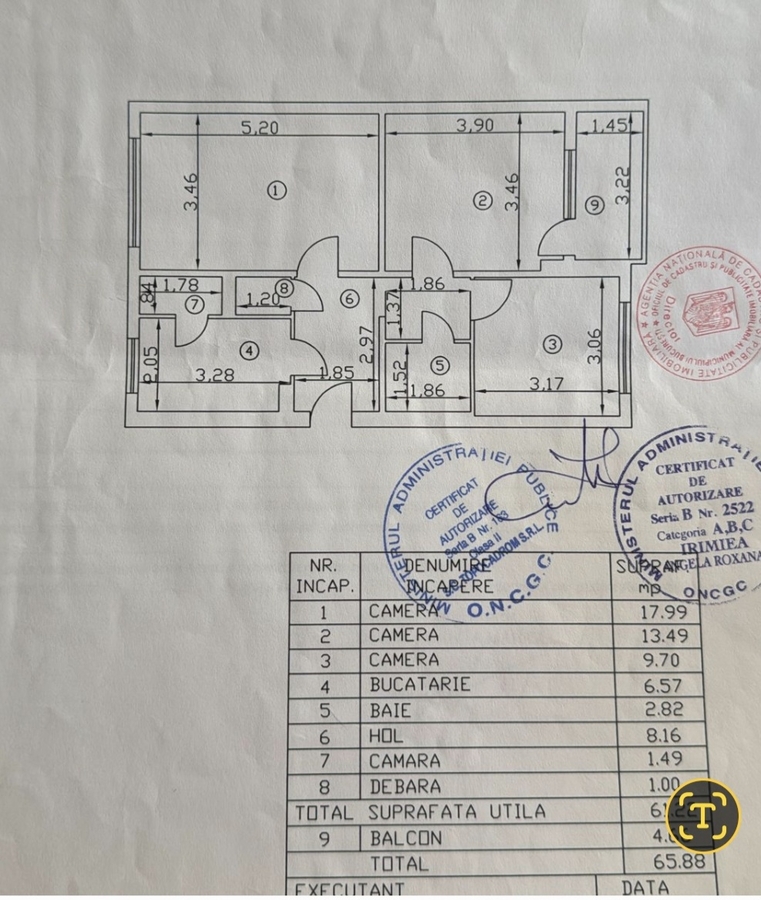 str.Armenis 5 minute Scoala 149/ Piata Trapezului, etaj 3/4,cf.1 dec., 66mp., bloc patru etaje 1969 reabilitat termic fara risc seismic, apartament bine compartimentat, sufragerie 18mp., dormitor mare 13,5mp.,bucatarie 6,5mp., cu posibilitate de extensie pana 9mp.,vedere mixta,orientare E-V, apartament curat,g,f,p, termopan,um,intalatii electrice cupru,liber, cadastru,intabulare