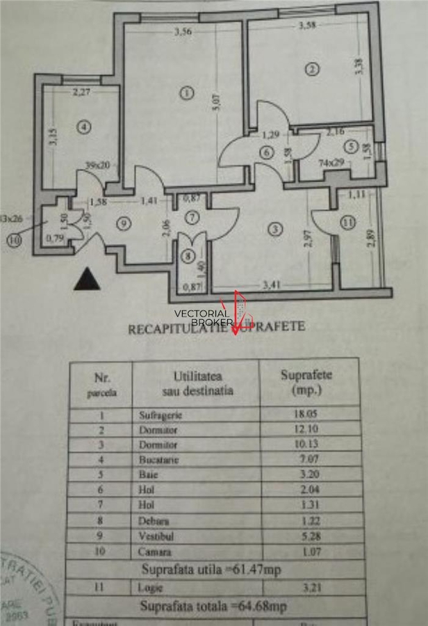 - Suprafata 61 mp