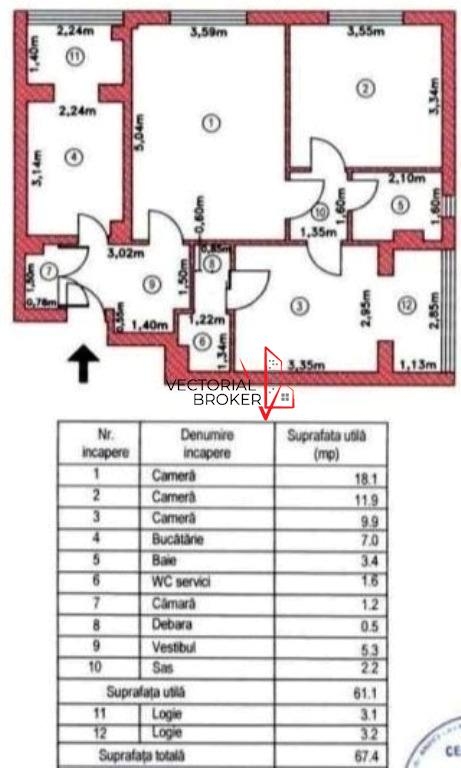 Vectorial Broker va prezinta la vanzare un apartament de 3 camere in Titan, reper Piata Minis, confort 1 semidecomandat avand suprafata de 61,1mp utili si 67,4 mp total, cu 2 bai si 2 balcoane. Locuinta este situata la etajul 9, intr-un imobil tip bloc turn(monolit)de 10 etaje anvelopat, construit in anul 1968, avand 4 apartamente pe palier. Apartamentul este imbunatatit si dispune de centrala proprie boiler de 20L; calorifere noi, instalati de teava pe cupru;AC x3; pereti: faianta, lavabil; podele: parchet, gresie; usa intrare: metal si este pretabil pentru locuinta .Recomandam aceasta proprietate persoanelor active pentru care o locuinta in apropiere de mijloacele de transport in comun, statie de metrou, centre comerciale, supermarketuri, piete agroalimentare si parcuri, reprezinta un factor de decizie.Pretul este usor negociabil si se accepta orice fel de creditare. ID intern: VB0523439.