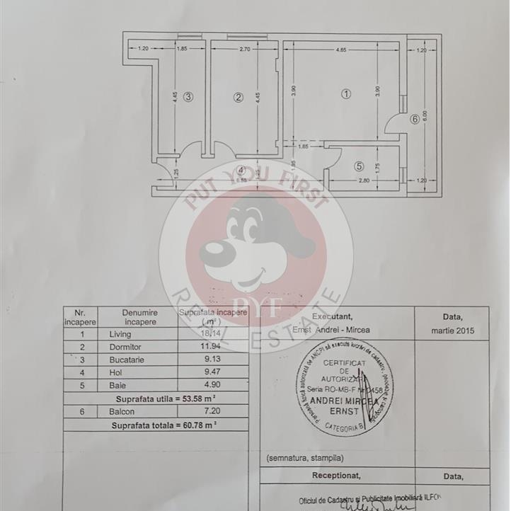 Put You First nu este doar un motto, este misiunea noastra!Pyf Real Estate percepe un comision de 50% din contravaloarea unei chirii lunare pentru intermedierea unei tranzactii de inchiriere sau 3% din valoarea de achizitie a unui bun imobil pentru intermedierea unei tranzactii de vanzare-cumparare. Din cauza numarului mare de oferte si a fluctuatiei pietei imobiliare informatiile din oferta pot suferi modificari atat in sens apreciativ, cat si in sens depreciativ, de asemenea, este posibil sa nu mai fie de actualitate la momentul prezentarii. Pentru clarificarea acestor aspecte va rugam solicitati actualizarea ofertei/ ofertelor dorite! De asemenea Pyf Real Estate este operator de date cu caracter personal, in conformitate cu reglementarile in vigoare. Pentru vizionarea unei ofere din portofoliul nostru va trebui semnat un contract de colaborare iar agentii nostri va vor cere un act de identitate pentru a completa acest contract. Neprezentarea acestui act poate conduce la neprogramarea sau anularea vizionarii ofertei dorite.