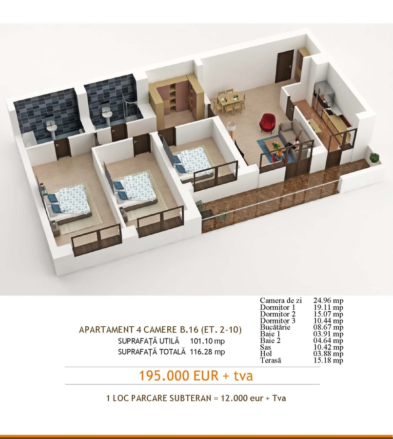 2 cam tip studio - 54 mp, 104.000 euro cu toate finisajele.