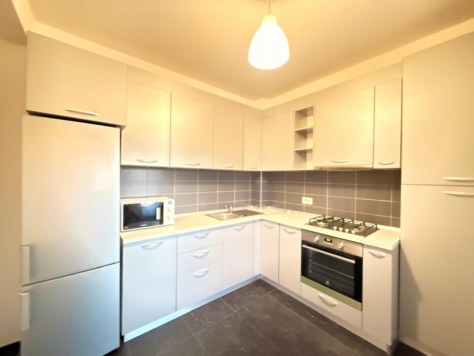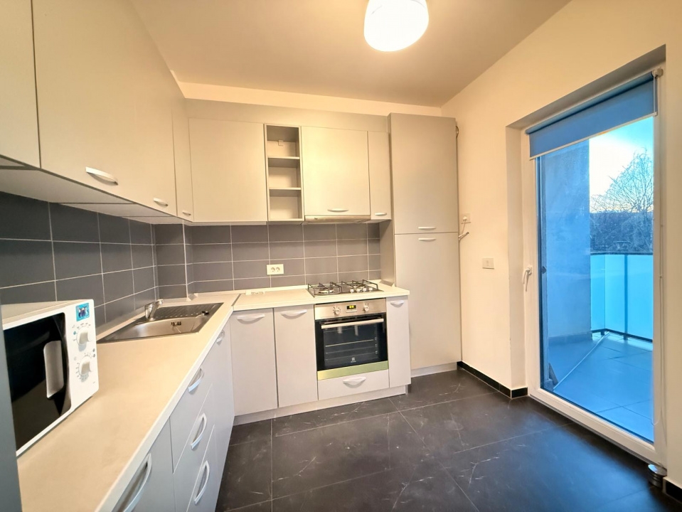 Bucataria este complet utilata si bine organizata: electrocasnice incorporate (aragaz, cuptor, hota, frigider, cuptor cu microunde), spatiu amplu de lucru si acces direct spre terasa – ideal pentru cei care gatesc zilnic.