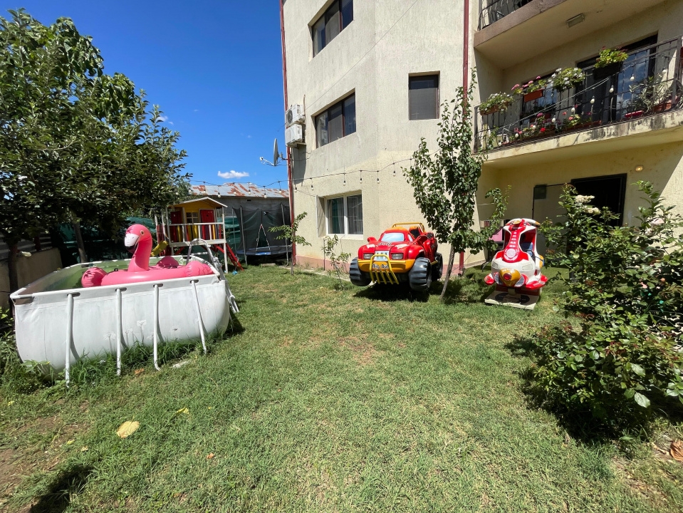 Terenul are o suprafata de 614mp iar amprenta casei de 150mp, la parter gasim un apartament de 3 camere, doua bai si