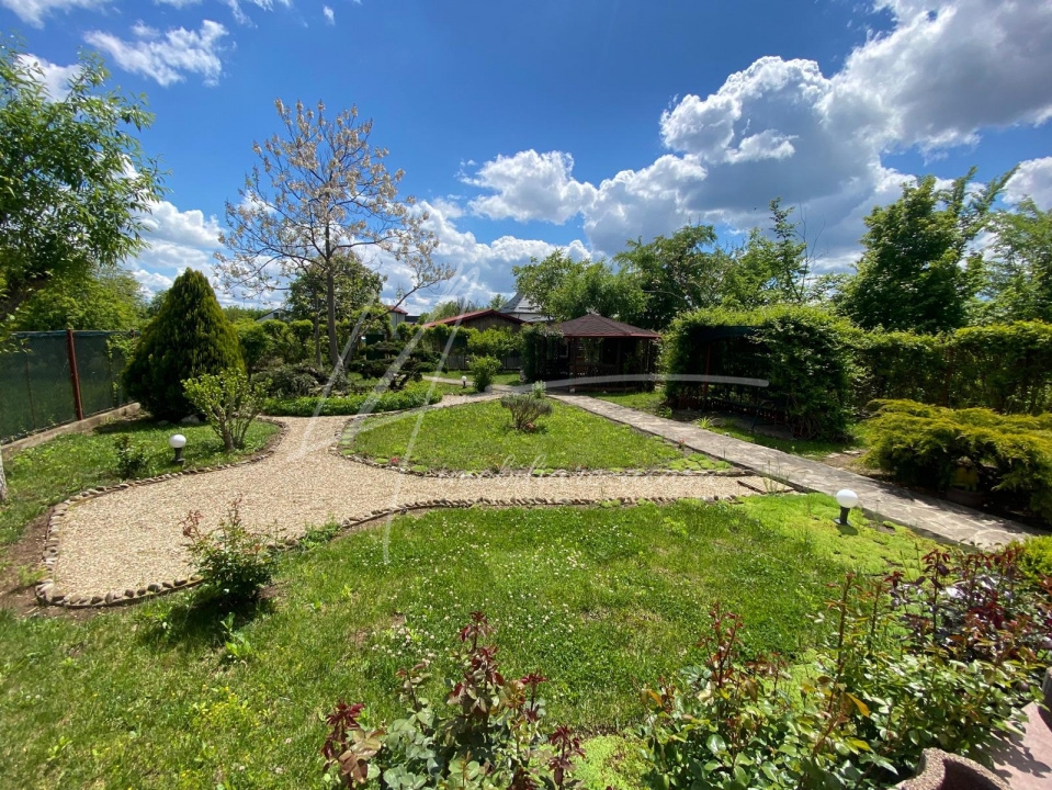 In spatele curtii si a casei, regasim o zona ce te imbie doar la relaxare, amenajata cu arbusti ornamentali, un mic iaz, un foisor cu gratar, toate armonizate pentru a-ti oferi sentimentul de vacanta in propria ta casa.
