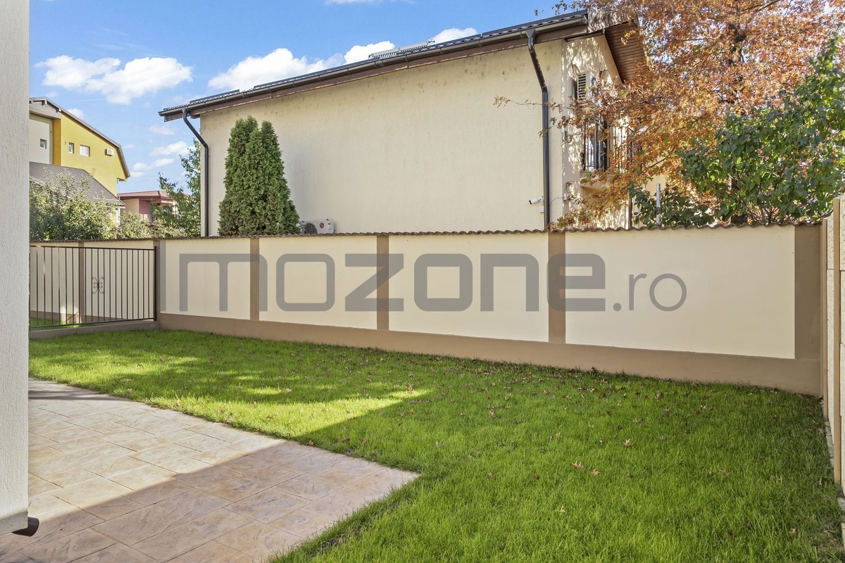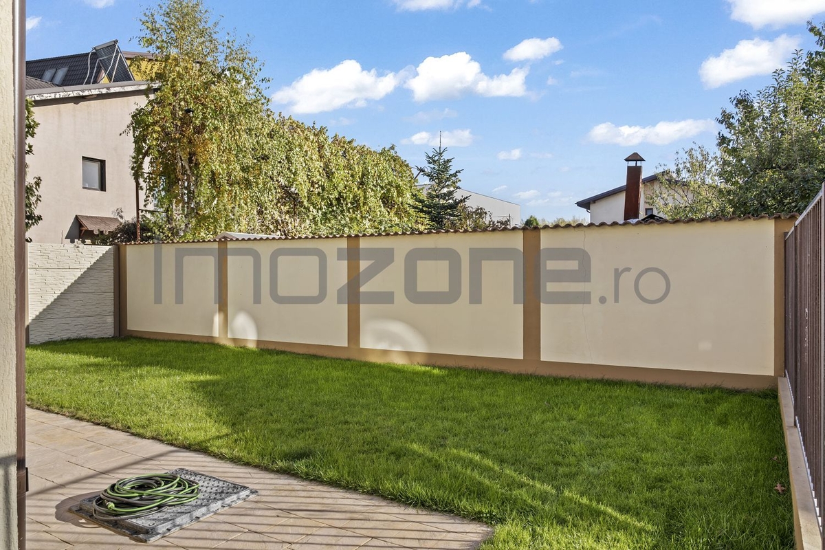 • Curtea este amenajata, cu gazon, si terasa pentru relaxare.