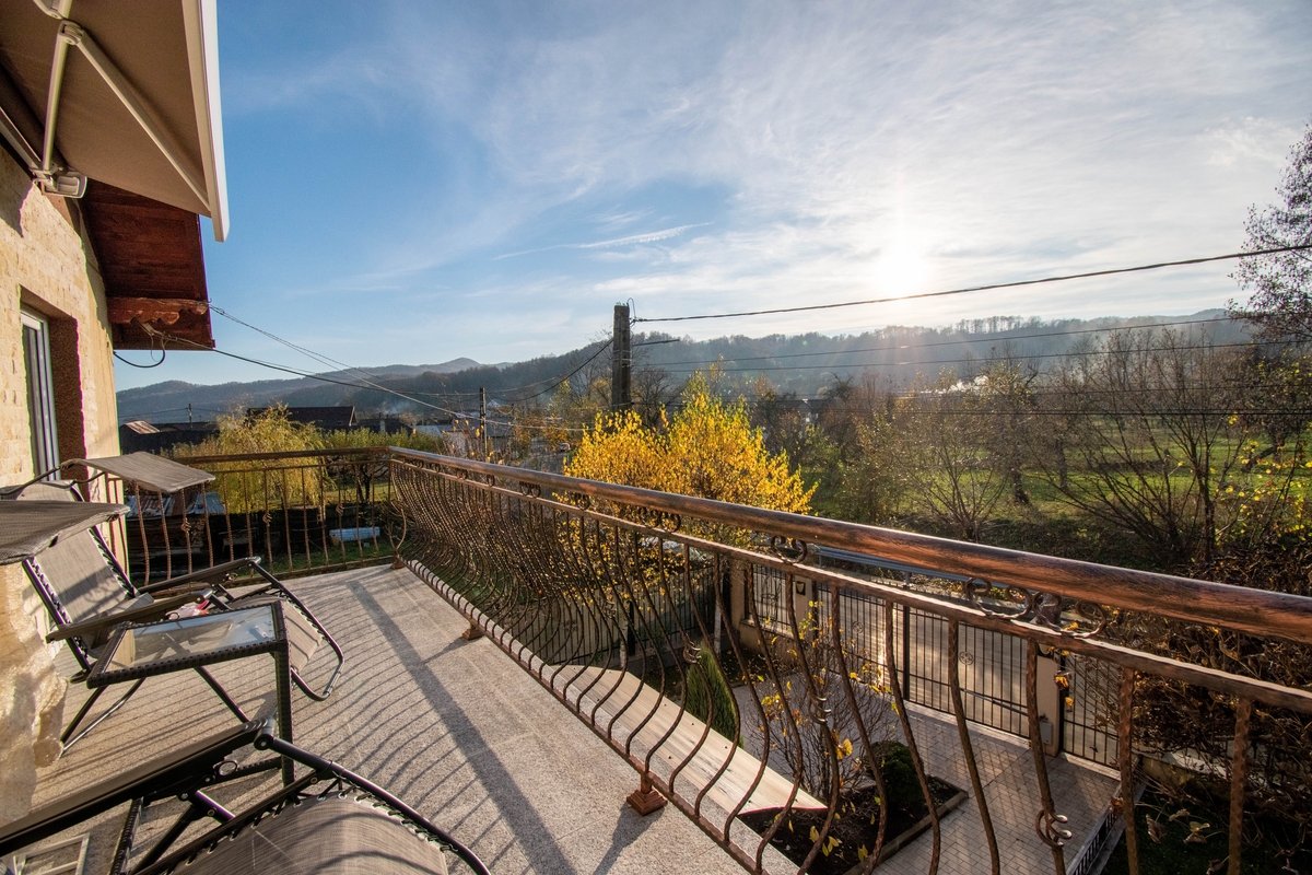 Proprietatea consta intr-o casa amplasata pe un teren de 1363 mp, perfect imprejmuit conform planului cadastral recent (2025). Casa dispune de doua niveluri (parter + mansarda), cu suprafata construita totala de 278,5 mp si utila de 236 mp. Imobilul se afla intr-o zona linistita, cu acces facil si priveliste frumoasa.