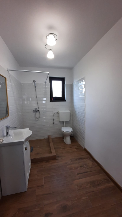 Casa a fost construita in regie proprie, sub supravegherea noastra, pentru folosinta proprie, retragere de la sosea de 22 m. S-au folosit cele mai bune materiale pentru siguranta, confortul propriu si pentru eficientizarea consumului. Printre altele, la placa de jos, izolatie polistiren, tavan izolat cu rigips, tevi in pardoseala de cea mai buna calitate, preizolate,cu copex, termopane farest cu plase de tantati la toate geamurile, tip storuri, plase de tantari chiar si la geamurile de la cabana etc.