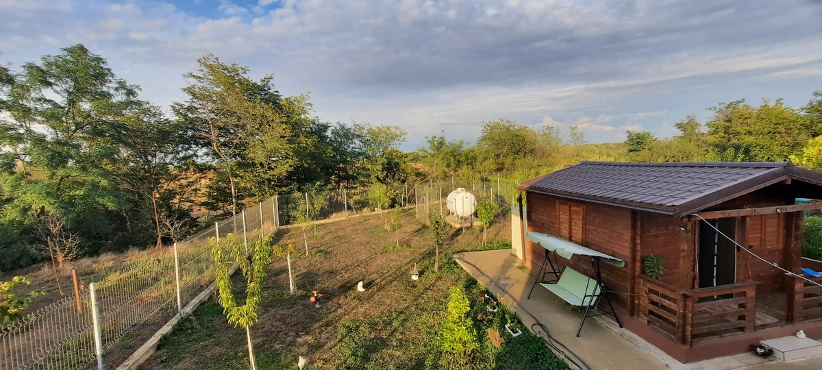 Langa casa este si cabana din lemn cu fundatie, izolata interior, locuibila, acoperis tabla noua, cu scurgere trasa pentru grup sanitar, formata din camera de 16 mp inalta cu 2 ferestre si terasa 4 mp, ST 20 mp.
