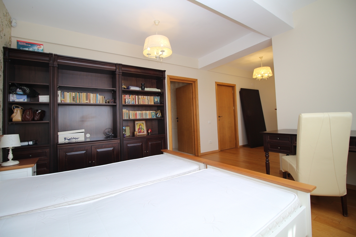 Etaj: 3 dormitoare, 2 bai (dormitorul matrimonial cu baie proprie cu cada si terasa), dressing, terasa si balcon.