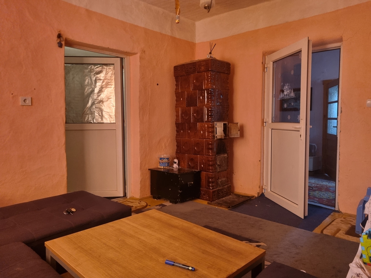 Casa de vanzare in Comuna Tormac cu asfalt in fata casei suprafata terenului este de 1453 din care suprafata casei este de 150 mp din care suprafata utila 106.57 mp 2 camere 1 baie 1 bucatarie curtea ii partial betonata si in curte mai am garaj pentru masini anexe cocini de porci 3 locuri casa ii legata la reteaua de apa incalzirea se face pe sobe pentru mai multe detalii la telefon