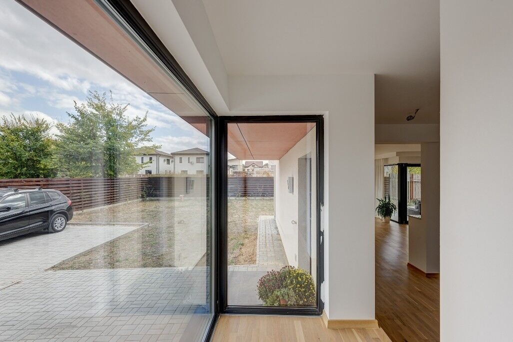 Spatiile vitrate mari, iti dau sentimentul ca esti in mijlocul naturii, chiar daca te desparte de aceasta un geam. Lumina este din plin, si te poti bucura de ea, in diferite momente ale zilei. Toate acestea au fost posibile, cu profile Salamander Streamline 76 – 7 camere, culoare Gri Antracit, cu 3 panouri de sticlā Saint Gobain 40 mm (LowE / Float / LowE Clima Protect), feronerie Roto-NT cu sistem de microventilatie.