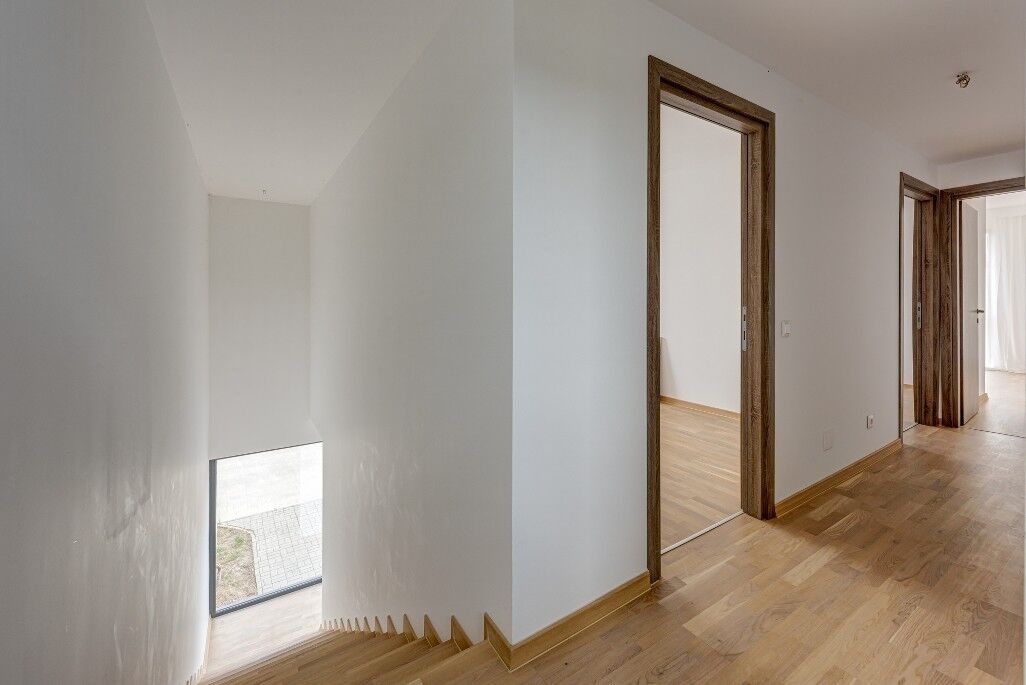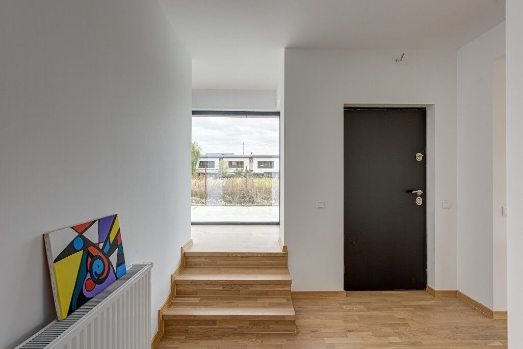 - Scarā interioarā din beton armat avand treptele placate cu lemn din aceeasi gama cu parchetul ales.