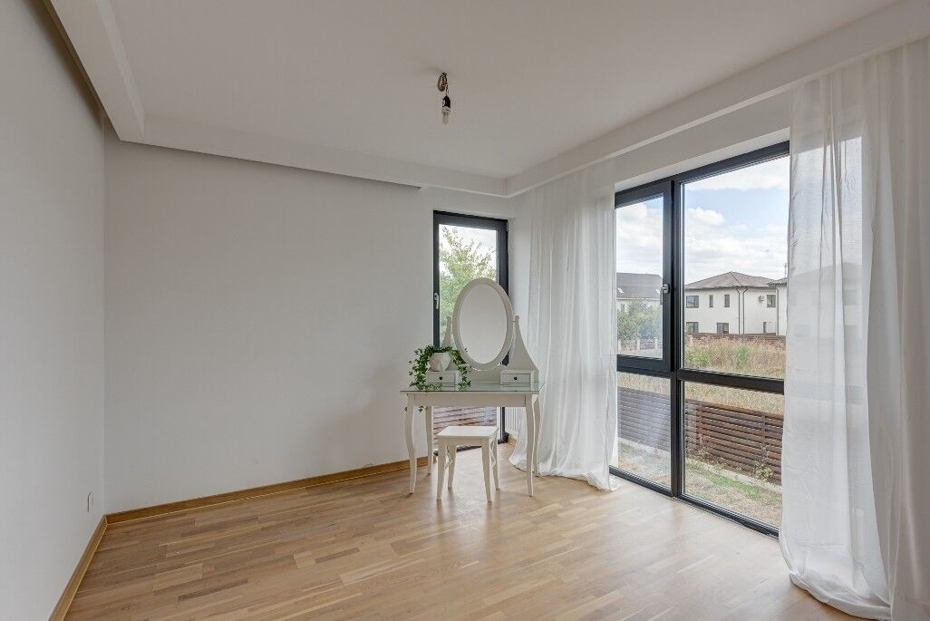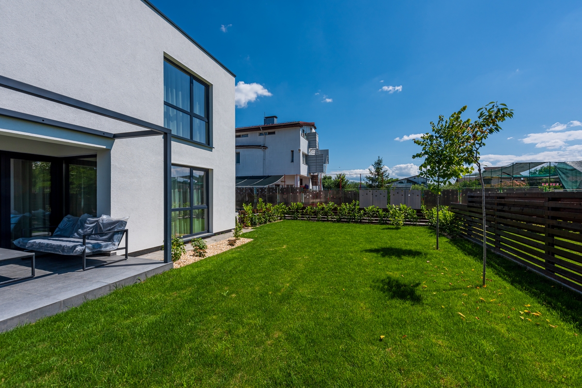 Casa H este in acest moment in curs de finisare, ea se preda la cheie, astfel ca pozele de interior si peisagistica gradinii sunt cu titlu de prezentare. Avantajul este ca iti poti alege combinatia de culori a finisajelor.