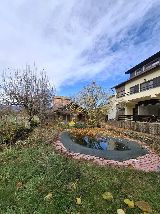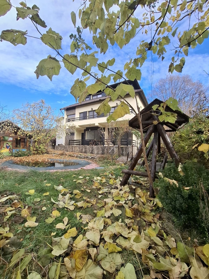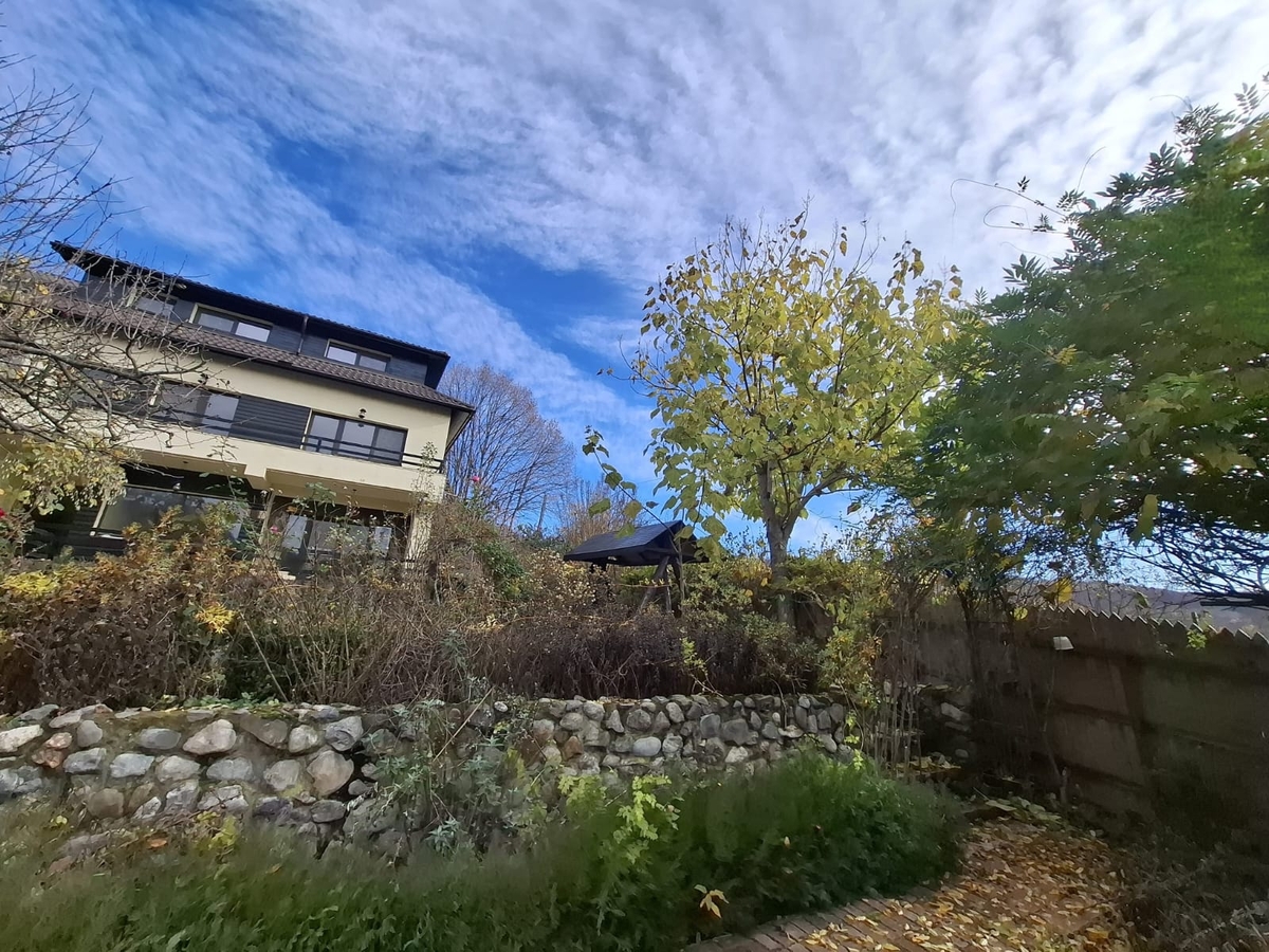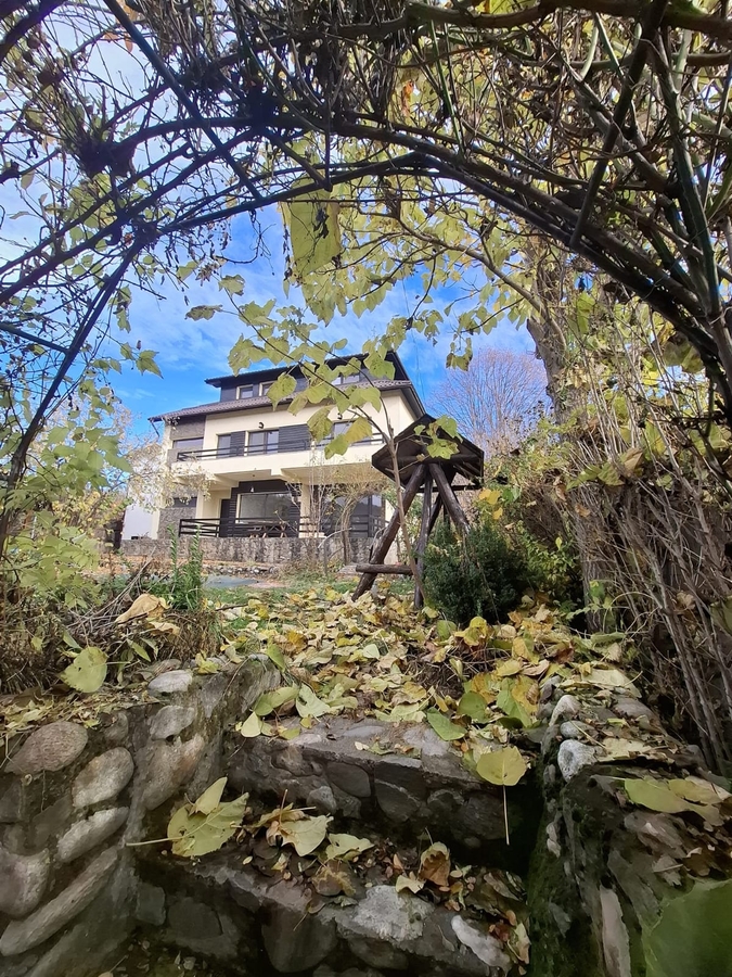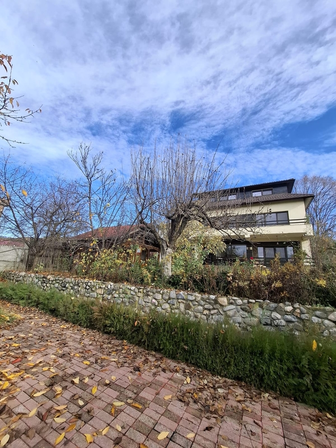 Se vinde proprietate eleganta P+1+M complet finisata (finisaje premium), suprafata utila 384 m , amprenta la sol 92 m , situata pe un teren intravilan de 1.871 m . Proprietatea include doua anexe (38 m si 32 m ), piscina, foisor, vie pe rod si livada, curte imprejmuita, acces auto pe drum asfaltat. Configuratie: 3 dormitoare, 2 livinguri spatioase, 4 bai, bucatarie, balcon, terasa, posibilitati de compartimentare suplimentara a mansardei. Utilitati racordate: apa, canalizare, electricitate.