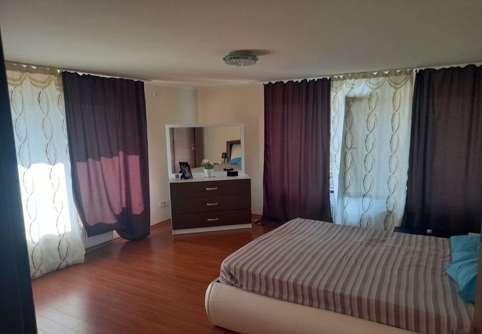 Agentie imobiliara va propune spre vanzare casa individuala P+1+M, toate utilitatile. Casa este compusa din P-hol de 40 mp, living 40 mp, bucatarie, baie 10 mp, 2 dormitoare de 18 mp. Etaj -hol 30 mp, living 40 mp, 4 dormitoare de 20 mp, dresing 10 mp, baie 10 mp, debara 4 mp, balcon 18 mp. Mansarda -open. Pe fiecare etaj este montata centrala termica, aer conditionat. Casa se vine mobilata si utilata lux