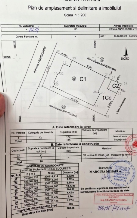 •Teren total: 173 mp (teren liber 82 mp)