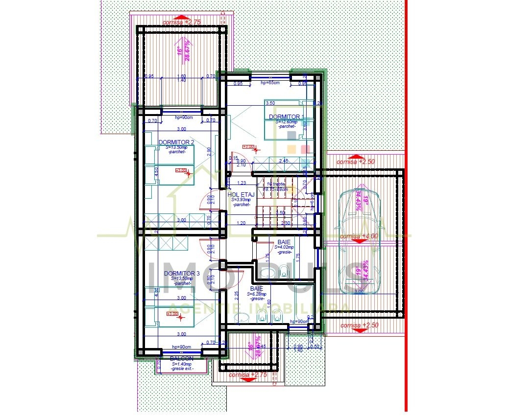 - etaj : hol, 3 dormitoare, 2 bai, balcon;
