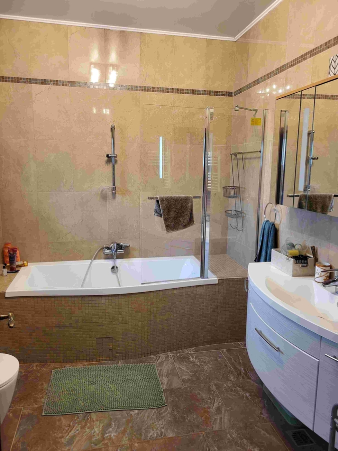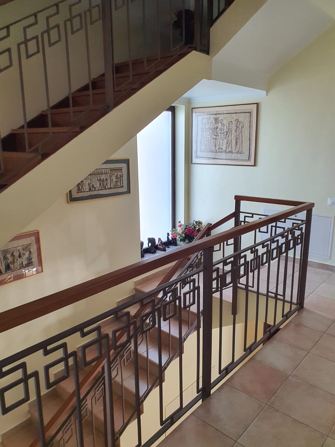 casa stil mediteranean - modern, P+1+m, stare impecabila, 300 mp construiti, 270 mp utili, teren 500 mp + anexa depozitare 10 mp cu pivnita si gratar. Strada retrasa doar 4 proprietati, 3 locuri parcare in curte si pe strada. 6 camere, 3 bai. Parter: living + dinning 70 mp, terasa 20 mp cu acces direct, birou, bucatarie, spalatorie, wc, dressing + pantofar. Etaj: 3 dormitoare mari, 2 bai mari, dormitor matrimonial cu baie si dressing separat. Mansarda: spatiu deschis de relaxare sau dormitor + spatiu separat dressing + spatii depozitare. Structura in cadre de beton armat, zidarie porotherm, izolare termica cu polistiren grafitat de 10 cm, acoperis izolat cu 10 cm vata bazaltica si 10 cm vata minerala, ferestre si usi tripan rehau, parter incalzire in pardoseala, centrala viessmann, termostate, aer conditionat, toate utilitatile.