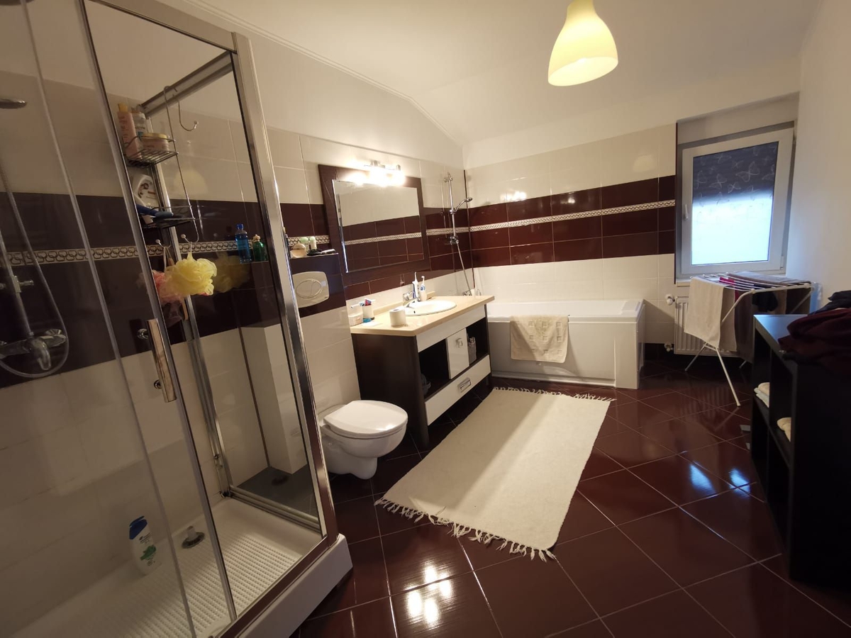 Incalzirea si apa calda se face cu o centrala Buderus de 36 kw si panouri solare (2 bucati). Caloriferele sunt din otel iar tevile sunt din cupru. Panourile solare sunt conectate la un boiler de 300 litri si vara face apa calda.