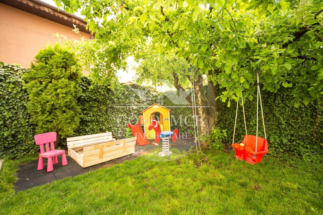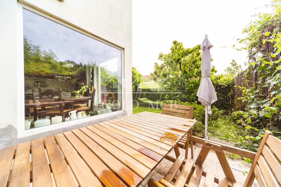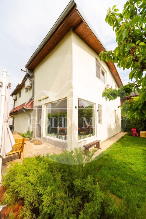 Curte verde, matura, cu arbori care dau viata gradinii: un brad semet, un mar roditor, un cires bogat si locuri speciale pentru relaxare, prieteni si gratare.