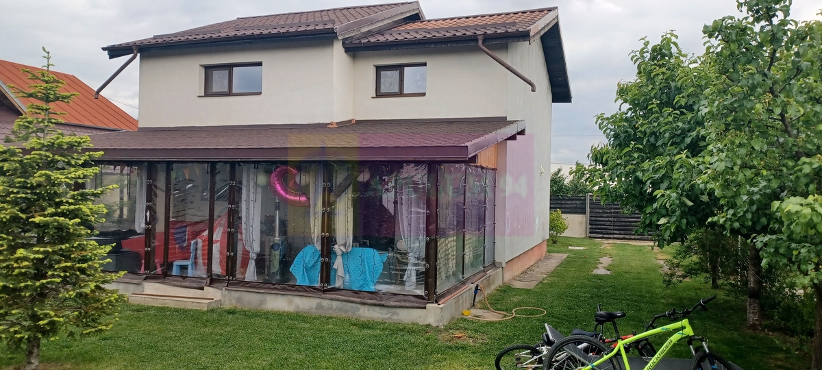 Imobilul se afla in Sabareni, la aproximativ 12 Km de Centura de Vest a Bucurestiului, cu acces prin Militari si Dragomiresti sau prin Chitila, DN7 si Padurea Raioasa. Constructia a fost finalizata in 2010, are 4 camere + dependinte si este compartimentata astfel: la parter, living, dining, bucatarie, baie, hol, terasa acoperita si casa scarii iar la etaj 3 dormitoare, baie, si hol. Casa are 165 mp suprafata construita desfasurata, din care 117 mp suprafata utila + tersa 24 mp, pivnita si magazie. Structura de rezistenta este din beton armat si zidarie din BCA, izolata termic cu polistiren de 15 cm, acoperita cu tabla ondulata tip Lindab, tamplarie PVC cu geamuri termopan. Locuinta are calorifere si centrala proprie pe gaze si este finisata complet: gresie, faianta, parchet, obiecte sanitare, usi interioare. Scara interioara este din beton armat iar treptele sunt placate cu lemn. Curtea este imprejmuita si amenajata, cu pomi fructiferi, arbori si arbusti ornamentali, flori, gazon. Pretul este 132.000 EUR, putin negociabil. Nu se plateste TVA sau comision