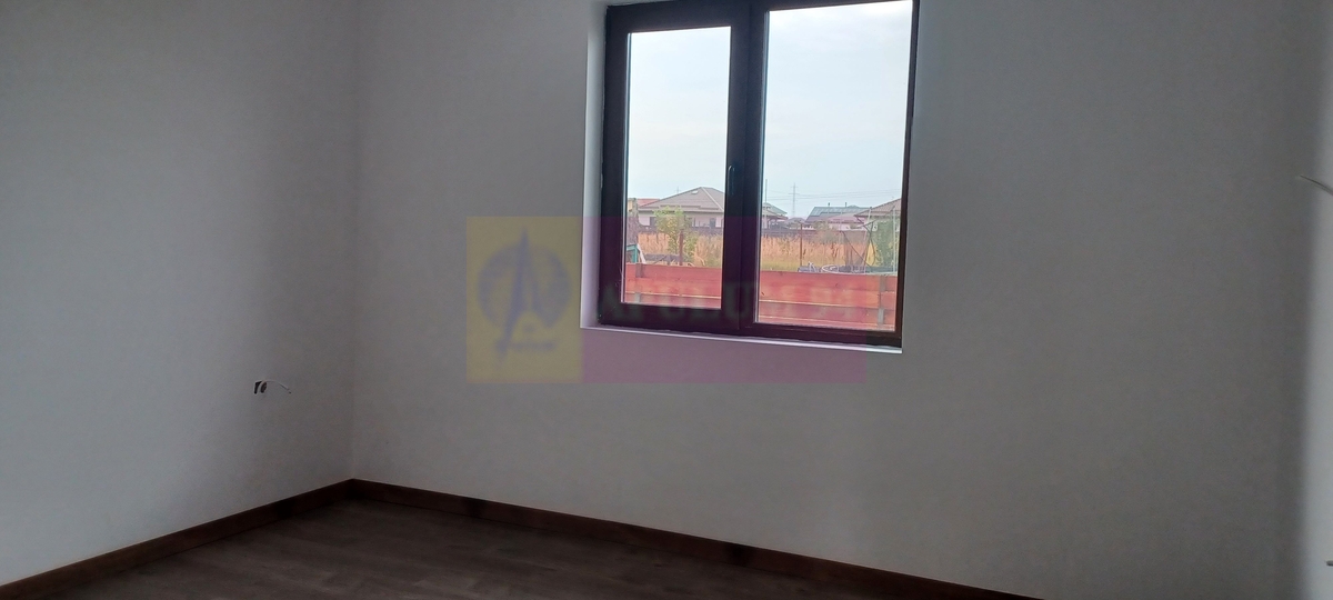 In Sabareni, la 11 km de Centura de Vest a Bucurestiului, intr-o zona rezidentiala noua. Casa are structura de rezistenta din beton armat, cu placa de beton si peste parter, cu zidarie din caramida, fara pereti din rigips, cu pod inalt si acoperis in 4 ape. Casa este tencuita la interior si izolata termic la exterior, cu polistiren de 100 mm, cu EPS 80 si tencuiala decorativa structurata. Are tamplarie Salamander cu geamuri tripan si este acoperita cu tigla metalica mata. Instalatie electrica, sanitara si termica, centrala termica pe gaze si incalzire in pardoseala. Este finisata complet: gresie, faianta, parchet, usi interioare si obiecte sanitare. Locuinta este alcatuita din living, bucatarie, 2 dormitoare, 2 bai, hol, camera tehnica, terasa si pivnita. Termen de finalizare 2 luni. Pret imobil, finisat complet si racordat la utilitati 120.000 EUR. Nu se plateste TVA sau comision.