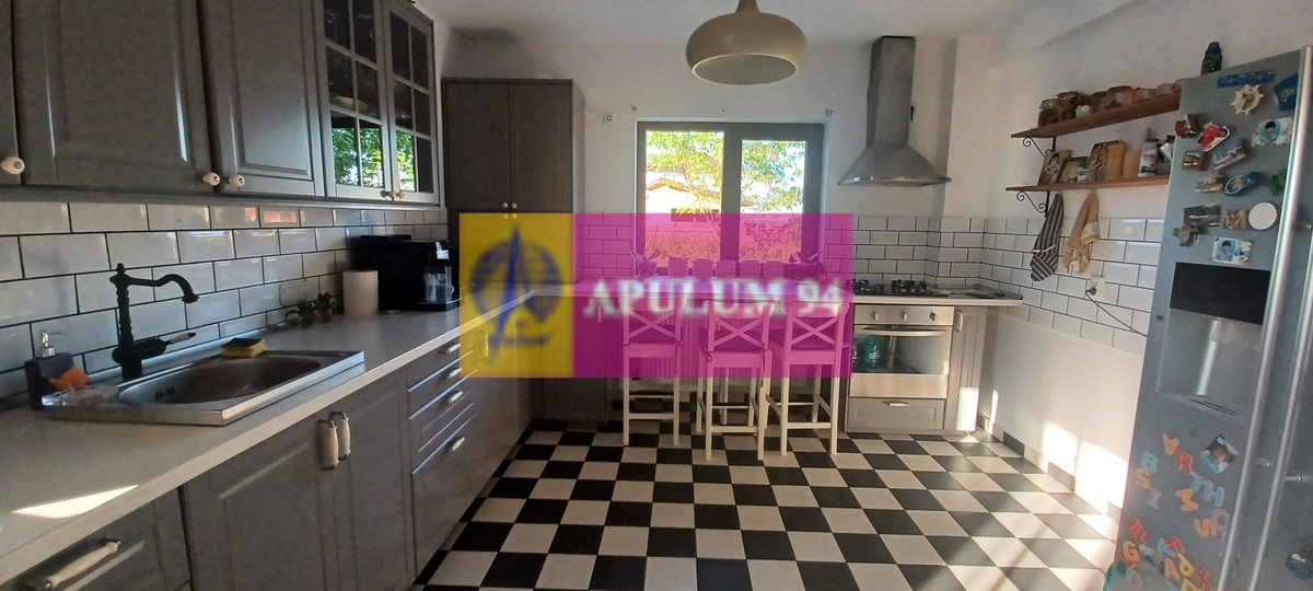 Vila se afla in partea vestica a Bucurestiului, la 12 Km de Soseaua de Centura, in localitatea Sabareni, in vecinatatea Padurii Cereanca. Locuinta are 2 nivele: parter - living, bucatarie, hol, baie, terasa acoperita, pivnita, casa scarii si etaj - 3 dormitoare, baie, hol si balcon. Eficient compartimentata, camere mari si luminoase. Structura de rezistenta este din beton armat, cu zidarie din caramida, tencuita la interior, izolata termic, cu ferestre termopan, finisata complet: gresie, fainta, parchet, obiecte sanitare. Centrala termica pe gaze, calorifere. Curte amenajata, alei, trotuare, gazon, arbori si arbusti ornamentali. Probabil casa pe care o cautati. Va invit s-o vedeti, cand aveti timp! Pret 160.000 EUR. Nu se plateste TVA sau comision