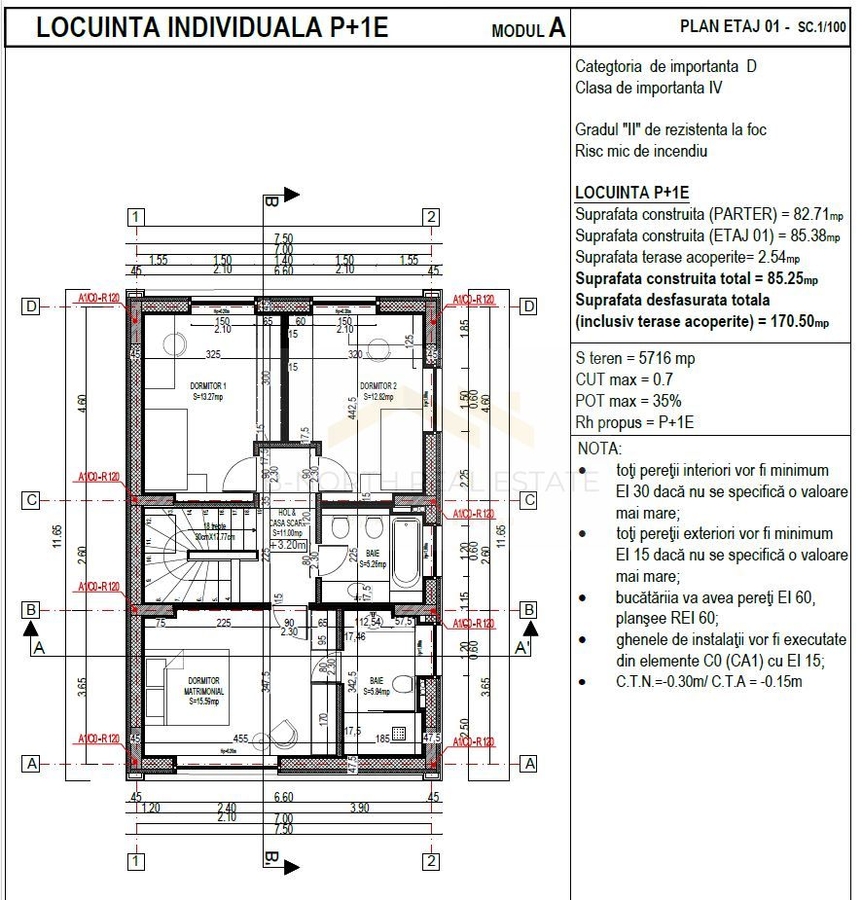 • Suprafata construita per locuinta: aprox. 170,8 mp