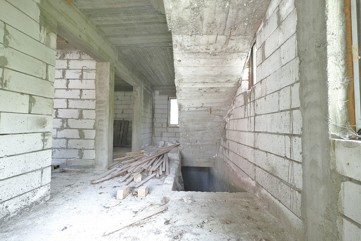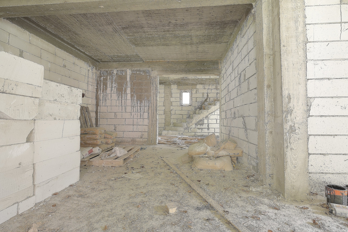 Exteriorul este complet finisat: termosistem Austrotherm, tencuiala decorativa Caparol, tabla ondulata Viking, tamplarie din PVC cu geam termopan Rehau iar interiorul este la rosu si este compartimentat astfel: Subsol – pivnita, parter – living, bucatarie si 1 baie, etaj – 4 dormitoare si 2 bai (2 apartamente) iar mansarda – 4 dormitoare si 2 bai.
