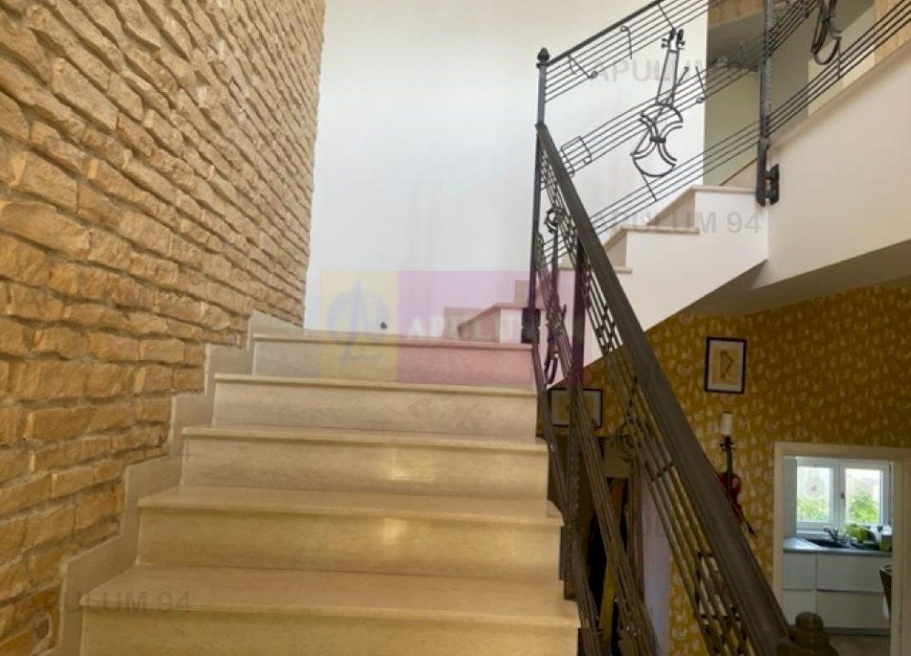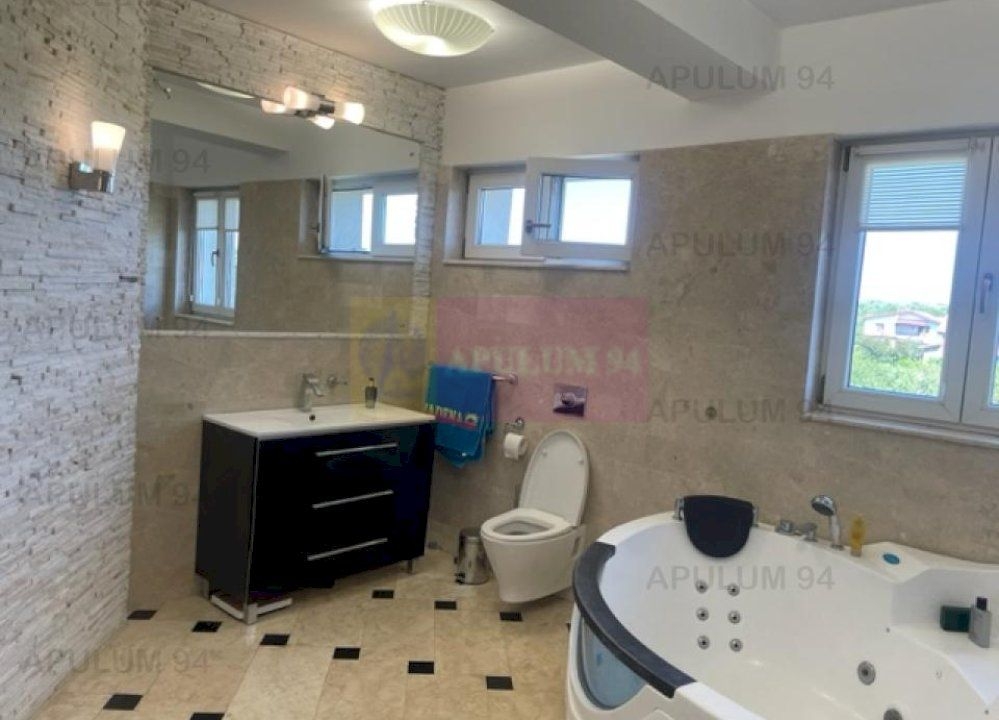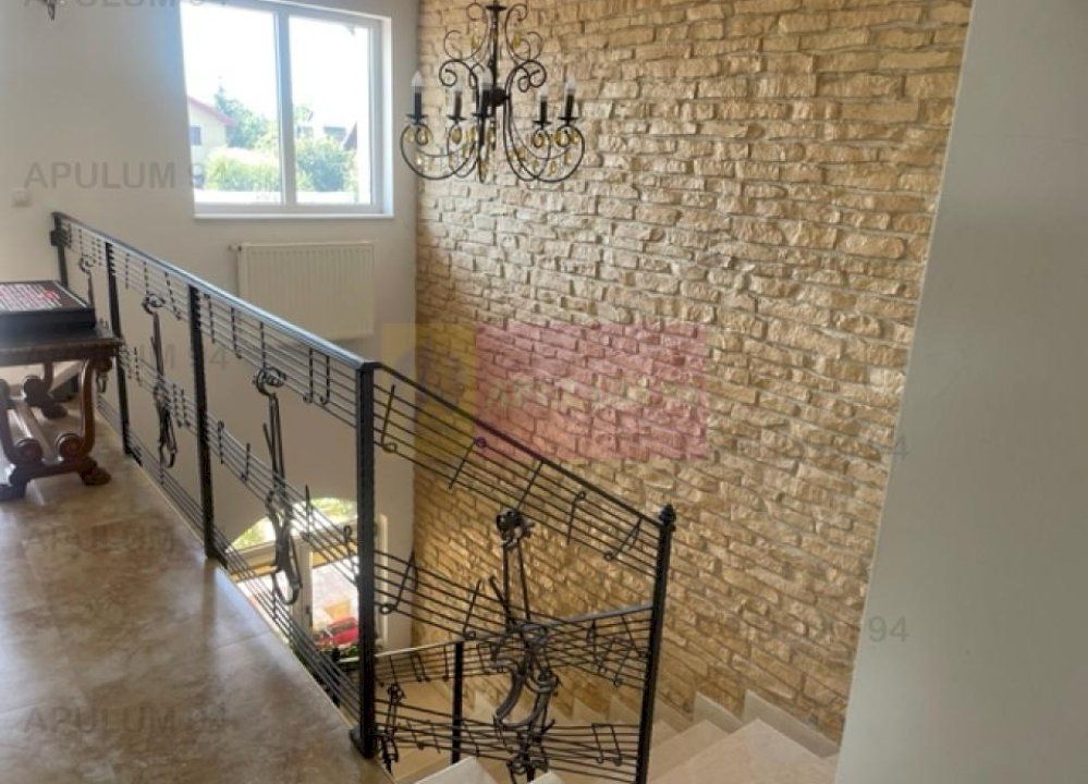 Finisajele interioare sunt de foarte buna calitate, respectiv termopane PVC Veka, parchet triplu stratificat, marmura in toate baile, piatra naturala in living si peretele scarii si holului de la etaj, usi interioare din lemn pe culoarea alba, 4 aparate de aer conditionat.