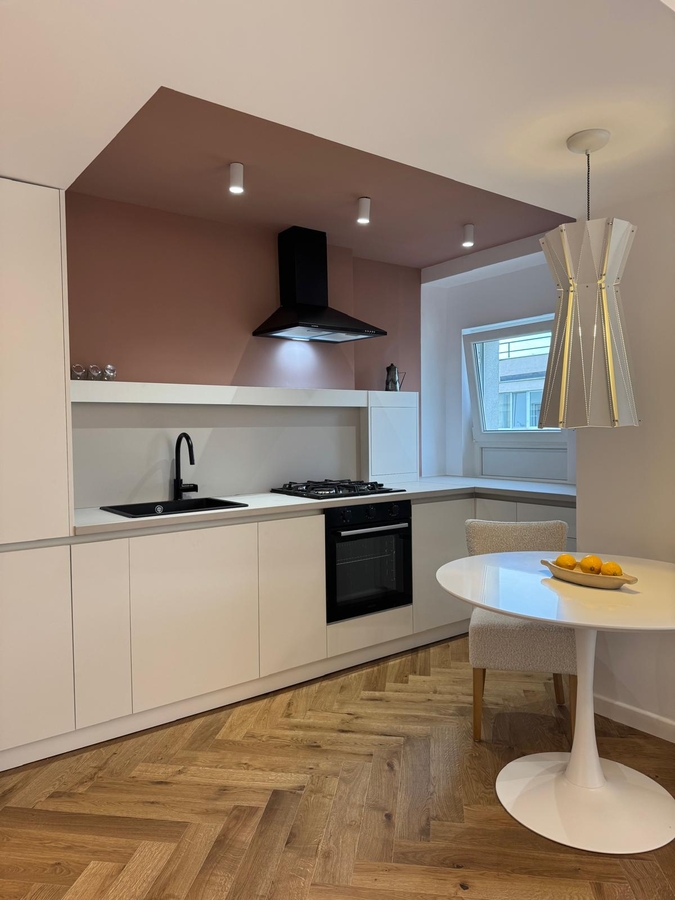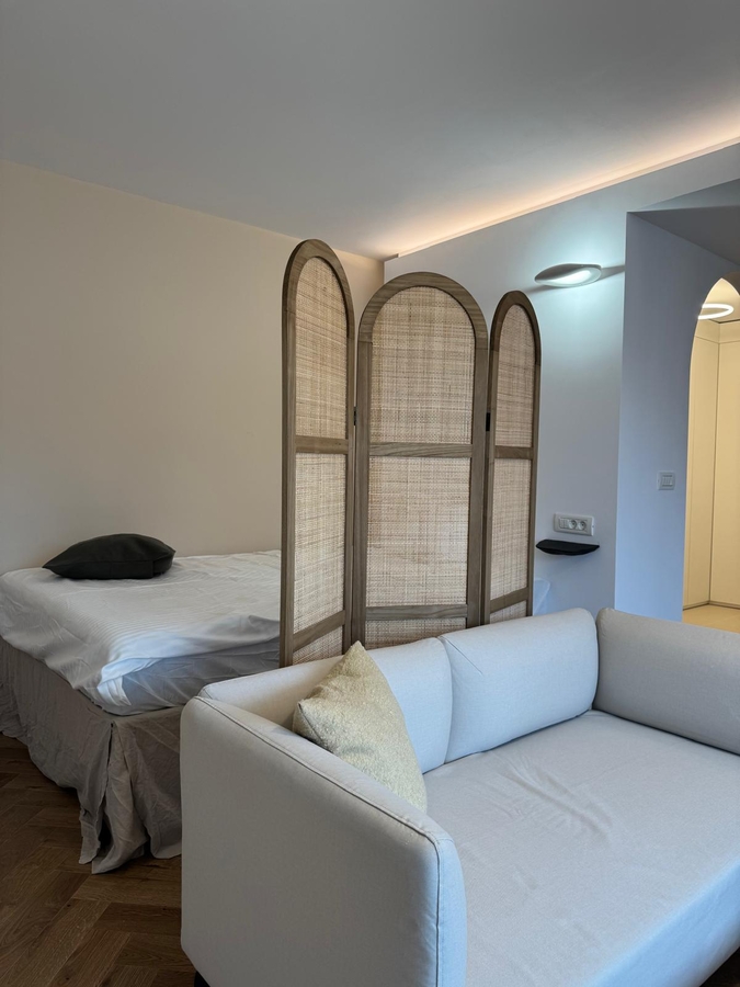 Garsoniera a fost complet renovata si recompartimentata in 2025, regandita dpdv functional pentru a crea zone specifice de dressing, nisa zona de noapte, bucatarie cu dining open space, baie cu dus walk-in si bancuta din ceramica. Au fost schimbate complet instalatiile electrica+sanitara, finisajele (de calitate superioara! - Ceramica Gigacer in baie si parchet triplu strat Barlinek, vopseluri IR Colour), caloriferele, obiectele sanitare etc.