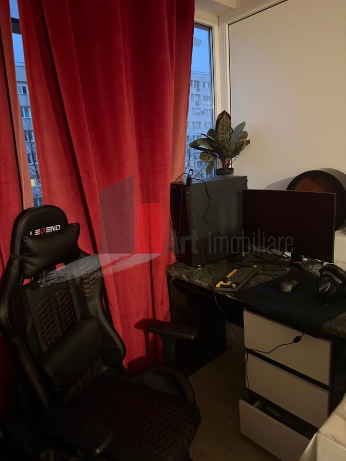 Compartimentare inteligenta: Balconul a fost transformat intr-un spatiu de birou luminos, ideal pentru remote work.
