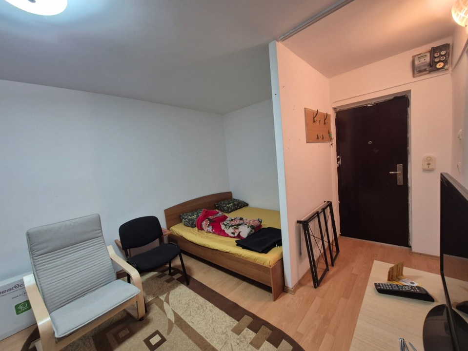 Garsoniera de 24 mp, situata la etajul 2 din 10, intr-un bloc cu doua lifturi. Imobilul este in curs de reabilitare termica, iar gazul este la usa.