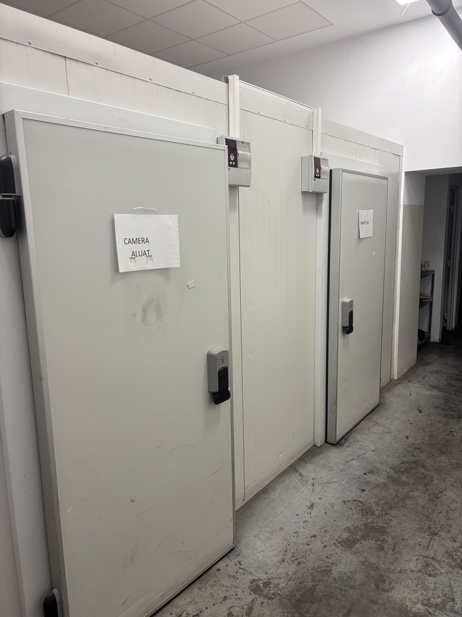 3 camere frigorifice existente – ideal pentru domeniul alimentar. Aceste camere frigorifice pot fi pastrate contra cost (6000 Euro), daca noului chirias/proprietar ii sunt necesare in activitatea pe care o desfasoara. In caz contrar vor fi demontate pentru a elibera spatiul.