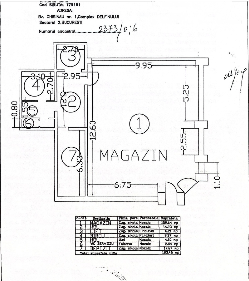Parter: 185 mp – open space prin constructie (in prezent compartimentat cu pereti de rigips, ce pot fi reconfigurati). La parter exista 2 toalete.