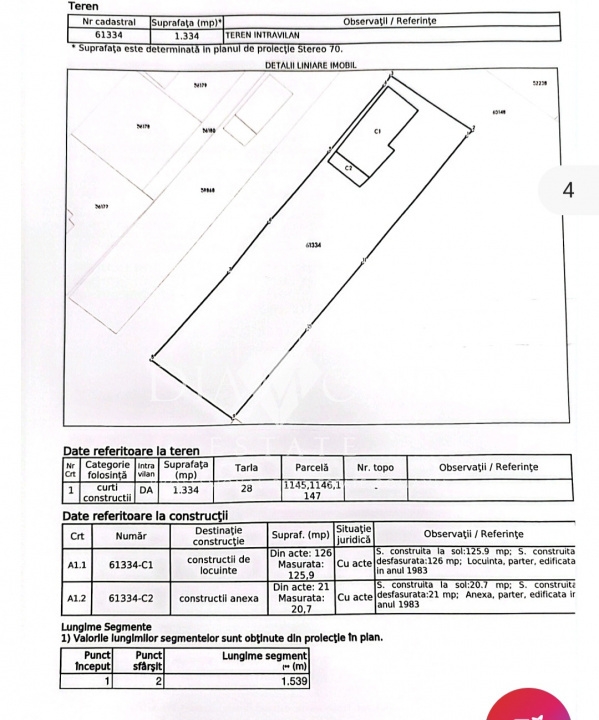 Terenul are suprafata de 1334 mp si deschidere de 19 m la strada.