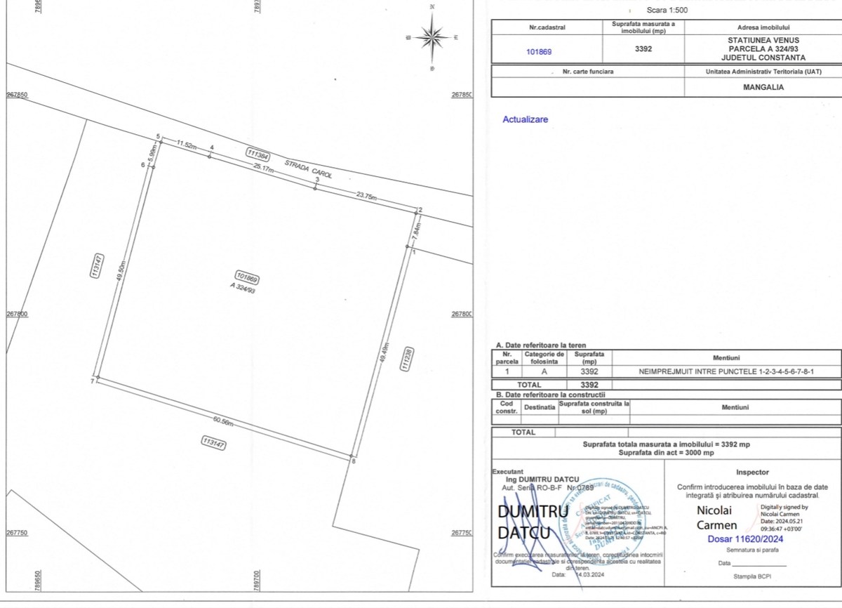 Zona A. Intravilan 55x60 P+5 POT 60%. 250 m de mare. Posibilitate de impartire in 2 parcele de 1500 mp. Next to Sopra Jupiter.