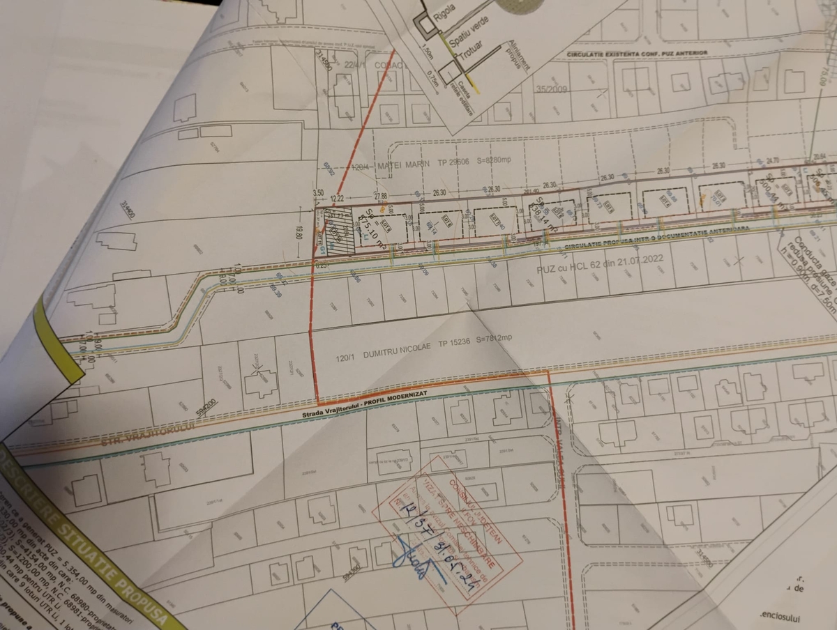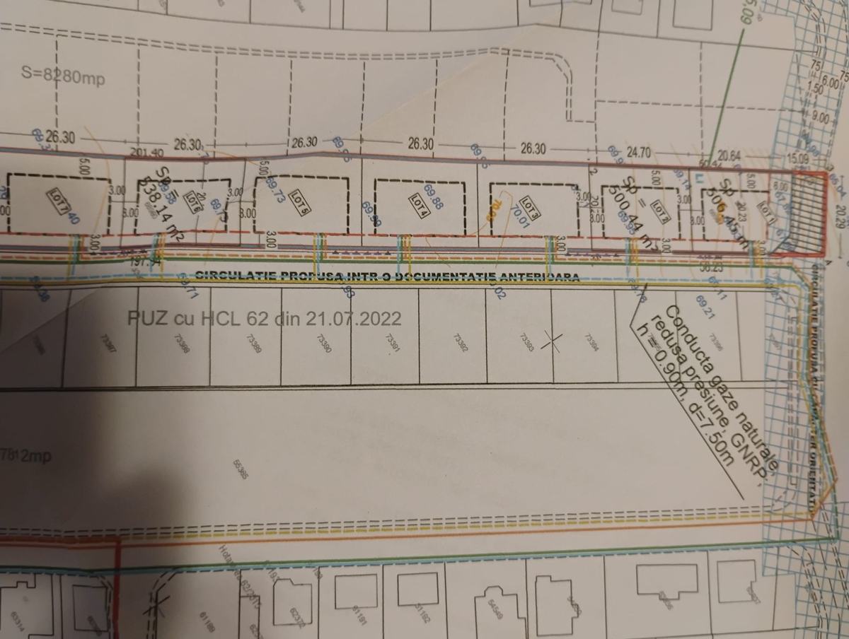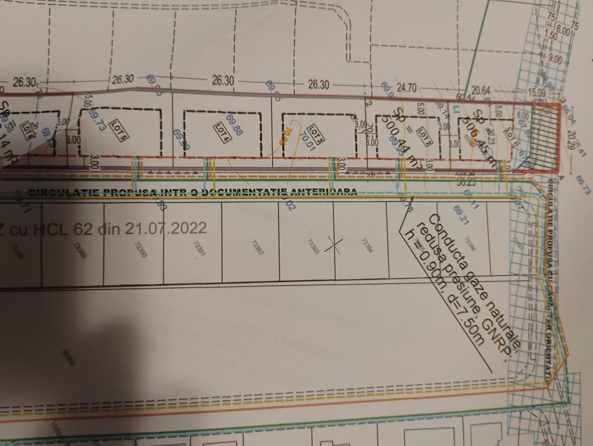 -suprafata 537 mp deschidere 26.03mp la o strada de 9m latime posibilitate constructie duplex cu p+1+ mansarda,,curent si gaze trase pe strada