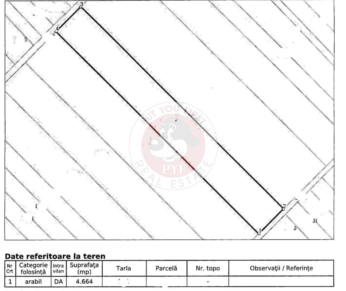 Pyf001B5699 Pyf Real Estate va propune, prin agentul zonei George D spre vanzare un teren situat in Copaceni, in imediata apropiere a Bucurestiului, intr-o zona ideala pentru dezvoltarea unei hale/unor case. Terenul, intravilan, construibil, in suprafata de 4664 mp, avand un front stradal de 24 ml, are o forma dreptunghiulara si beneficiaza de toate utilitatile zonei la aproximativ 100m de teren.