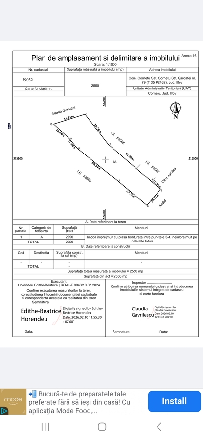 vand teren intravilan in Comuna Cornetu Ilfov, terenul este intre case, drum asfaltat, toate utilitatile la limita proprietatii, gaze, curent electric, apa si canalizare, deschidere la fata 32 de m pe spate 21 m, proprietar, toate actele pregatite pentru vanzare, pret 45 euro mp negociabil,