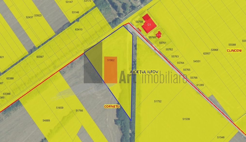 105ml la soseaua Ordoreanu, 28 ml la Sos Aeroportului si 188 ml la drumul comunal 127 Cornetu La acest moment terenul figureaza Extravilan agricol dat poate fi trecut in intravilan construibil