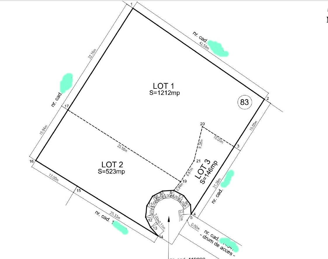 vand teren 606 mp, intravilan curti-constructii, in Voluntari, strada Galata nr. 83. Terenul provine din dezmembrarea lotului cu suprafata de 1212 din poza atasata. Se poate vinde tot lotul de 1212mp. Terenul dispune de toate utilitatile la poarta, este lipsit de sarcini in cartea funciara. La aceasta suprafata se adauga 85 mp cota indiviza din drum de servitute. Regim de inaltime P+2+M, POT - 40%, CUT 1.3 mp ADC/mp teren.