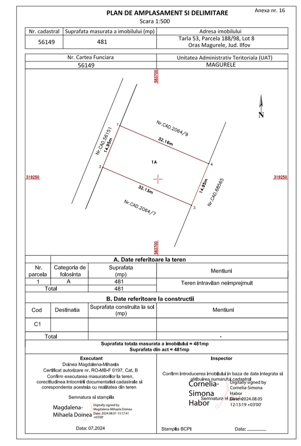 teren intravilan deschidere la doua strazi 481 mp, se invecineaza direct cu case, intr-o zona in continua dezvoltare plina de case noi si in constructii, in zona se face cel mai mare Campus Universitar,
