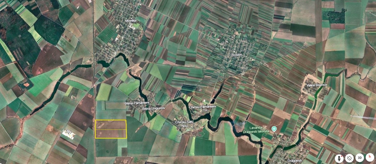 Com. MOVILITA – Ialomita, vanzare teren agricol in suprafata de 104 Ha. cu deschidere de 800 ml. la De si adancime de 1.300 ml.