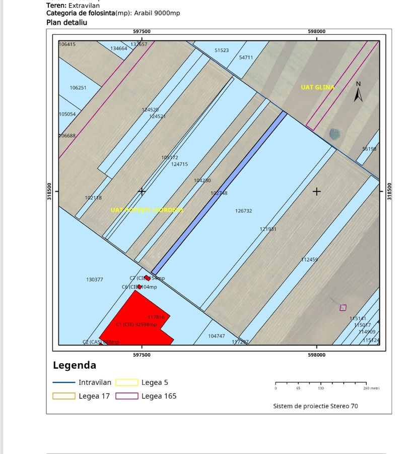 Va oferim spre vanzare un teren industrial alcatuit din 3 loturi lipite de 27000 mp (fiecare lor are 9000 mp) cu o deschidere la DN4 de 45 m liniari si o lungime de 600 m fix in spate la Jumbo Popesti Leordeni, cu acces pe drum de pamant, cf schitei alaturate.